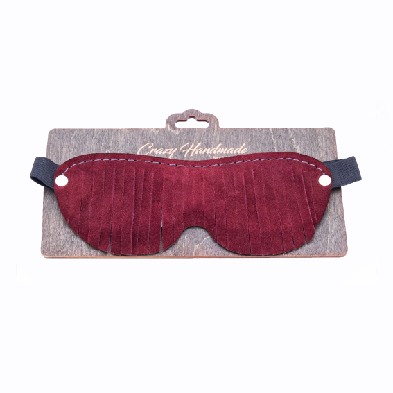 Маска выпол­нена из натуральной кожи, бахрома сверху из замши в винном цвете