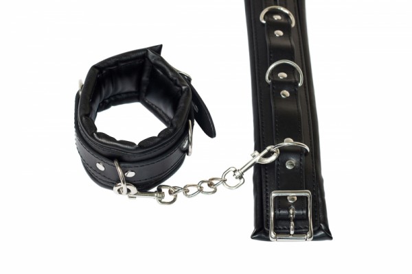 Выполнены оковы из высококачественной экокожи в черном цвете. Регулируемые, что позволяет добиться идеальной фиксации. Застегиваются при помощи ремешков. Между собой соединяются металлической цепью