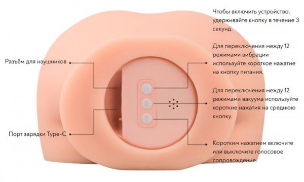 Мастурбатор имеет 12 разнообразных режимов вибрации, 12 режимов вакуума и голосовое сопровождение!
